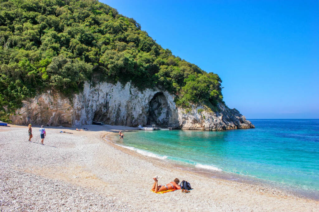Liapades Beach, located near the traditional village of Liapades, stands out for its clear waters, pebble shore, and impressive natural surroundings. Less crowded than Paleokastritsa, it offers a more authentic and relaxed beach experience.